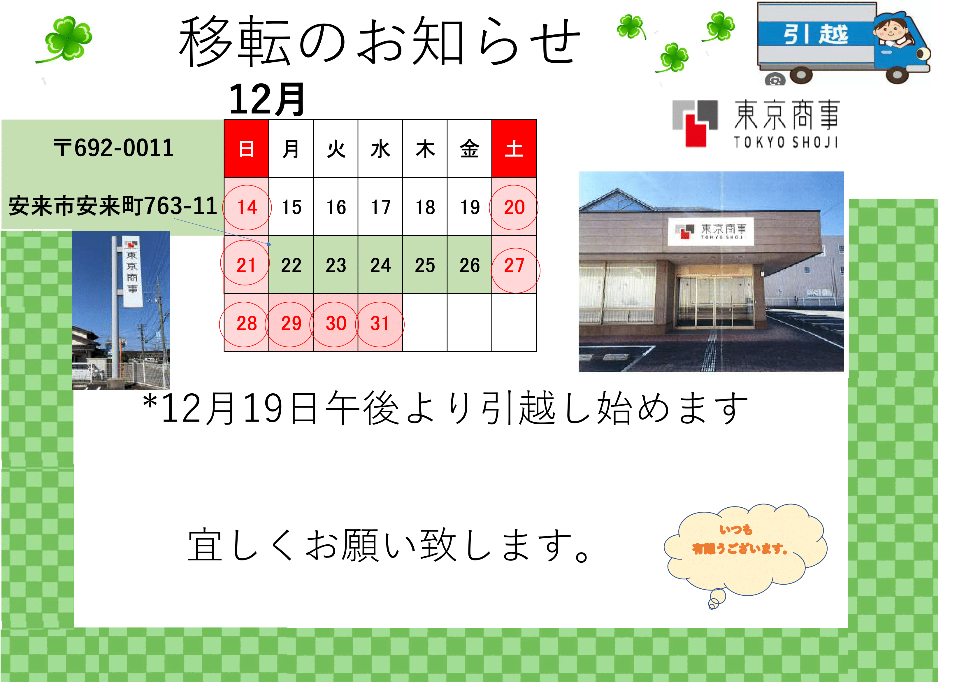 事務所移転のお知らせ!平素は格別のご高配を賜り厚く御礼申し上げます。 さて、このたび2025年12月22日月曜日に事務所移…